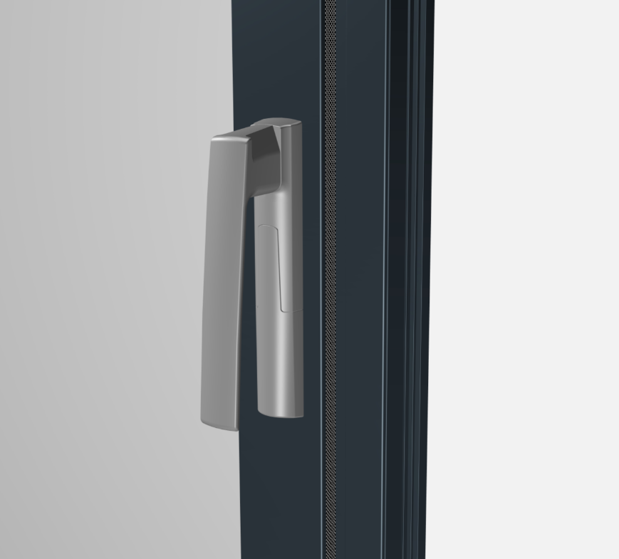 Des poignées intérieures « design » à rotation 20° permettent la manœuvre de l’ouverture du coulissant sans effort. De l’extérieur, une poignée de tirage en standard facilite l’ouverture et la fermeture du coulissant.